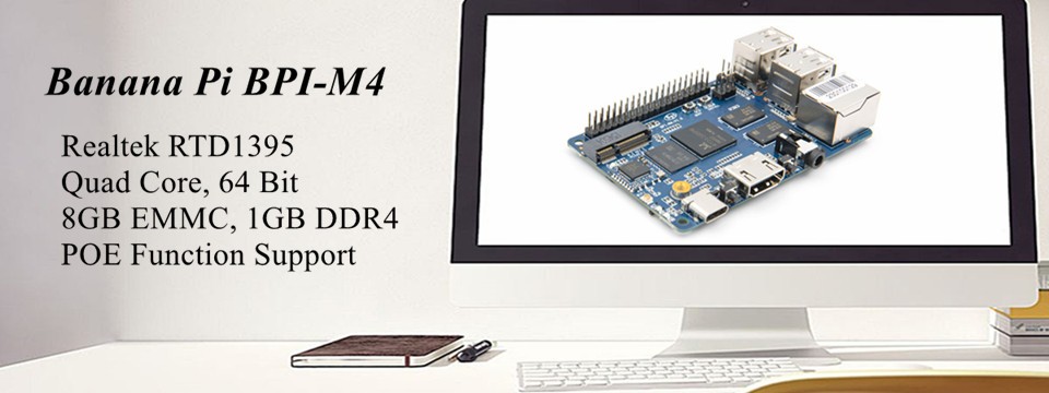 Banana Pi BPI-M4 là máy tính mini (Single Board Computer) 64-bit lõi tứ A53 sử dụng chip Realtek RTD1395. Nó có RAM 1GB/2GB và eMMC 8 GB. Nó cũng có WiFi tích hợp cho b/g/n/ac và Bluetooth 4.2. Về cổng kết nối, Banana Pi BPI-M4 có 4 cổng USB 2.0, 1 cổng USB TYPE C, 1 cổng HDMI, 1 giắc cắm âm thanh, hỗ trợ giao diện M.2 Key E PCIE 2.0.