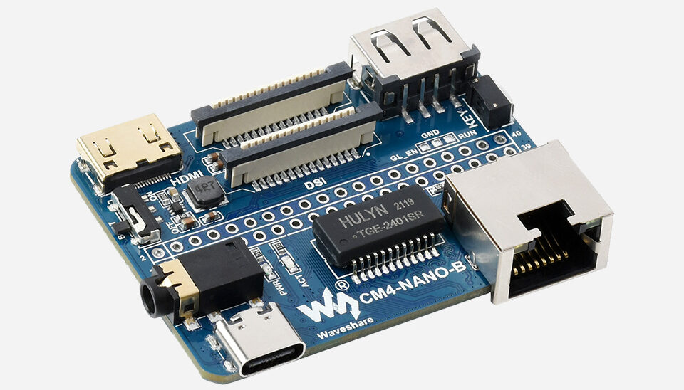 Chuẩn chân cắm CM4, hỗ trợ GPIO 40PIN, Cổng mạng Gigabit, USB2.0, cổng DSI và CSI, giắc cắm âm thanh 3.5mm… tất cả trong thân máy nhỏ gọn bằng đúng kích thước của CM4
