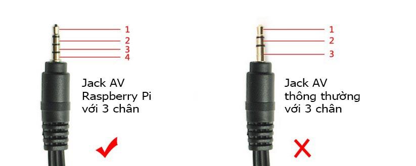 Từ phiên bản Raspberry Pi B+/2 trở đi nhà sản xuất đã tích hợp cổng Audio/Video vào một cổng 3.5 duy nhất. Nếu bạn sử dụng dây AV (RCA) bình thường vào Raspberry Pi thì sẽ không lên hình, hoặc tiếng bị rè rất khó chịu. Để sử dụng được cổng AV này bạn cần có jack chuyên dụng thiết kế riêng cho Raspberry Pi.