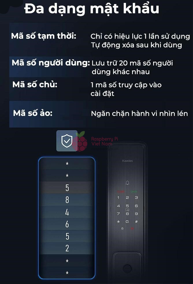Cảnh báo mở sai: Khóa sẽ phát ra âm thanh cảnh báo và tạm thời vô hiệu khoá nếu có kẻ xấu cố tình mở khóa hoặc nhập sai mật khẩu trên 5 lần.