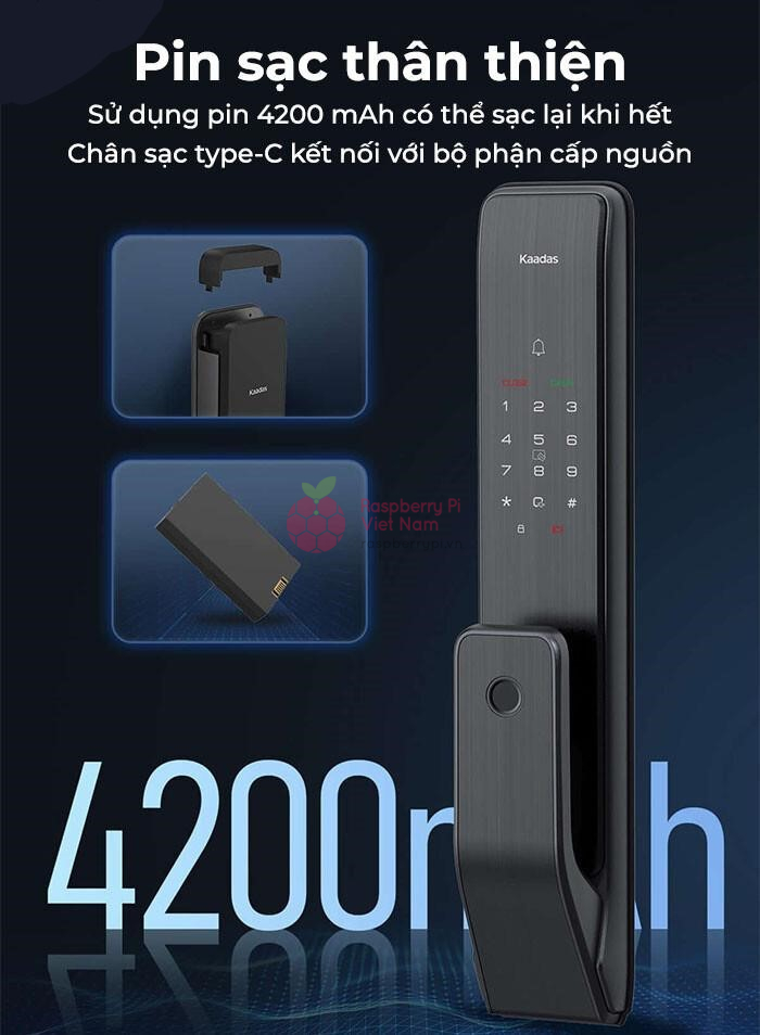 Kaadas Q3 được trang bị viên pin sạc có dung lượng lớn 4200mAh. Thân thiện với môi trường.