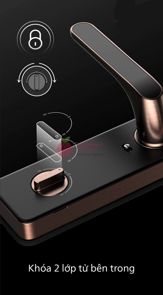 - Bảo mật kép: Khóa cửa chỉ có thể mở ra khi kết hợp cùng lúc 2 phương thức mở cửa: vân tay và mã số hoặc 2 lần vân tay, 2 lần mã số.