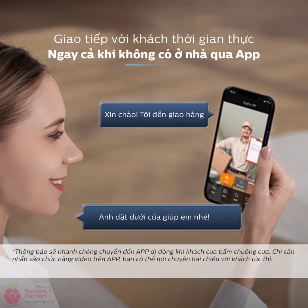 Khi khách nhấn chuông, thông báo sẽ đồng thời hiển thị trên màn hình khóa và ứng dụng Philips Easy Key trên điện thoại. Người dùng có thể bắt đầu đàm thoại hai chiều ngay lập tức bằng cách nhấn vào thông báo. Đồng thời, khóa tự động quay video, ghi lại đầy đủ thông tin khách đến ngay cả khi gia chủ vắng nhà.