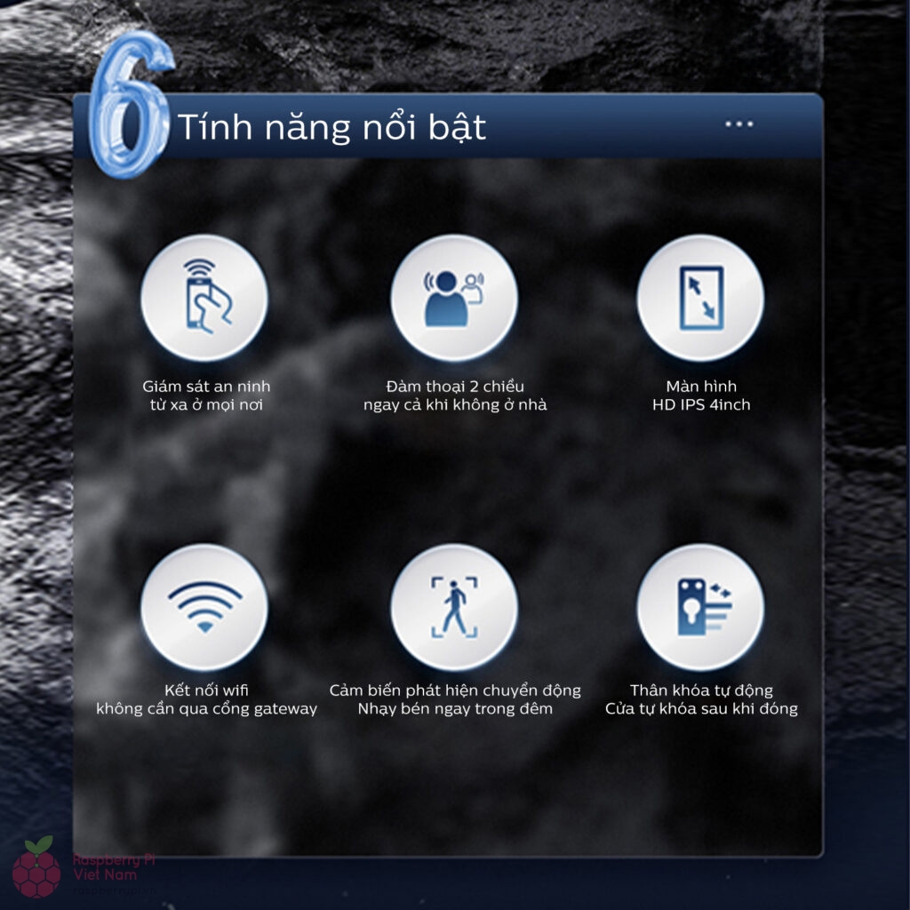 Khóa thông minh Philips Alpha-VP-5HWS tích hợp chuông hình, cho phép giao tiếp trực tiếp với khách ngay trên điện thoại. Camera bên trong khóa giúp xác nhận chính xác danh tính khách trước khi mở cửa, tăng cường an ninh và tiện lợi cho người dùng.