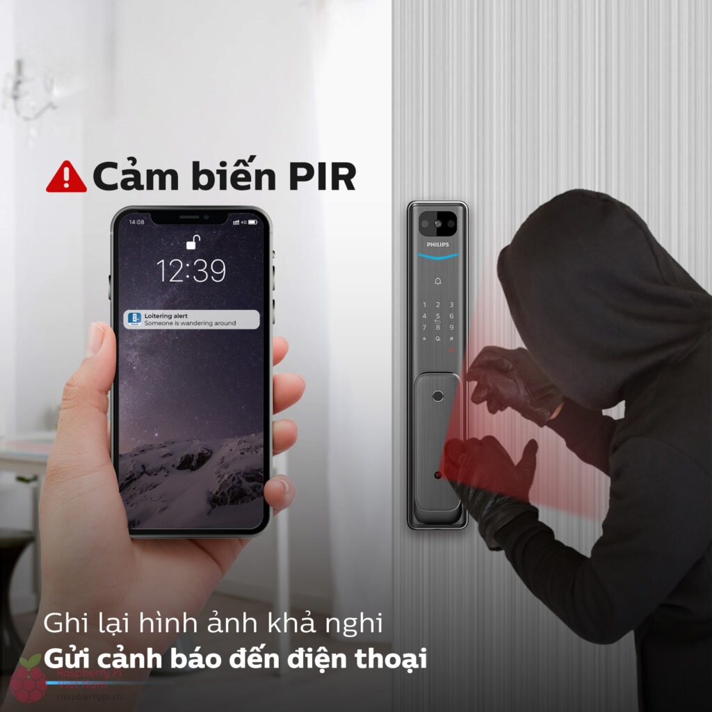 Nhờ cảm biến hồng ngoại thụ động (PIR), khóa Philips Alpha-VP-5HWS tự động phát hiện các tình huống bất thường. Khi có chuyển động nhiều lần xung quanh cửa trong phạm vi 3 m, hệ thống sẽ xác định hành vi khả nghi, tự động chụp ảnh hoặc quay video và gửi thông báo tức thì đến ứng dụng Philips Easy Key trên điện thoại của người dùng.