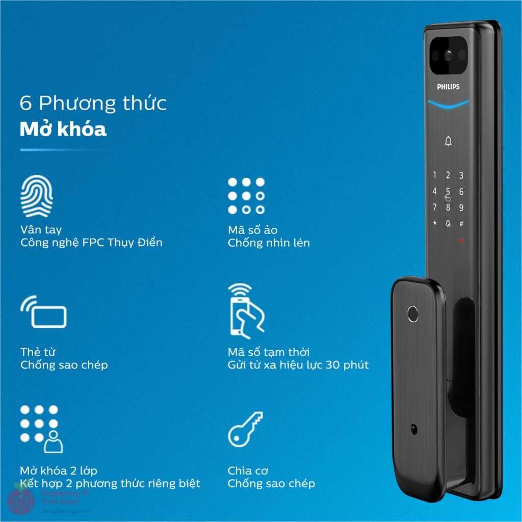 Với Philips Alpha-VP-5HWS, người dùng hoàn toàn linh hoạt trong việc lựa chọn phương thức mở khóa, tất cả đều thao tác đơn giản, nhanh chóng và tiết kiệm thời gian.