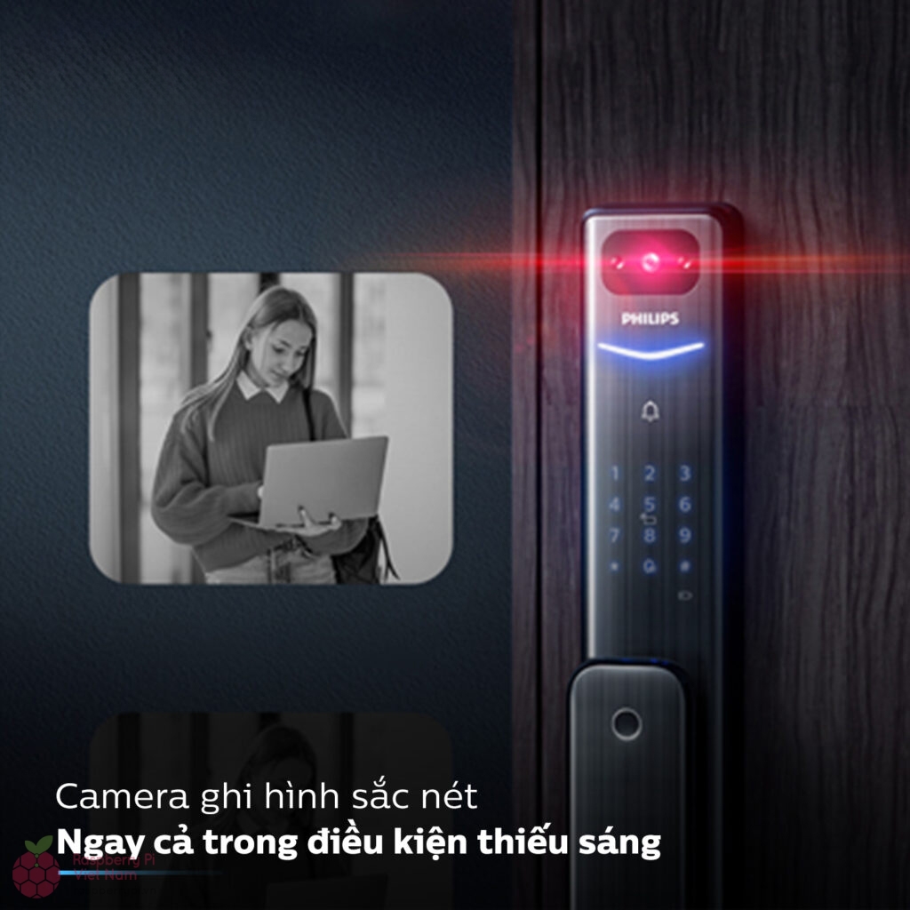 Philips Alpha-VP-5HWS được trang bị camera góc rộng 144° cùng hai đèn hồng ngoại công suất thấp, hỗ trợ chế độ ban ngày và ban đêm. Trong điều kiện ánh sáng yếu, đèn hồng ngoại tự động bật, chuyển sang chế độ quan sát ban đêm, cho phép nhận diện chi tiết khuôn mặt trong phạm vi 1 m từ đầu khóa.