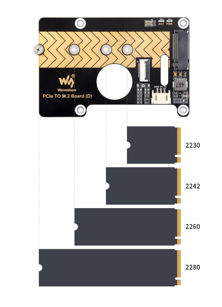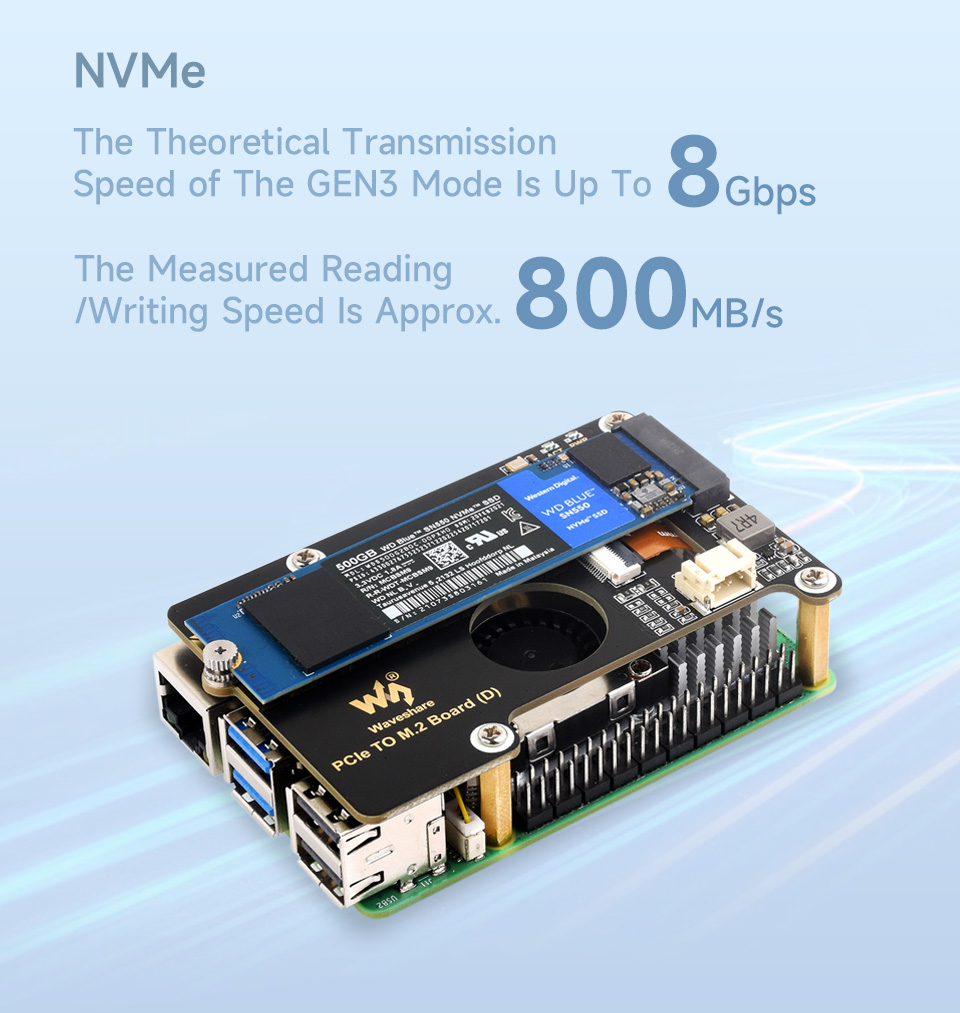 Tương thích với SSD M.2 Giao thức NVMe kích thước 2230/2242/2260/2280, Tốc độ dữ liệu 8Gbps, Đọc / Ghi tốc độ cao. Nâng cao hiệu suất làm việc của Raspberry Pi.