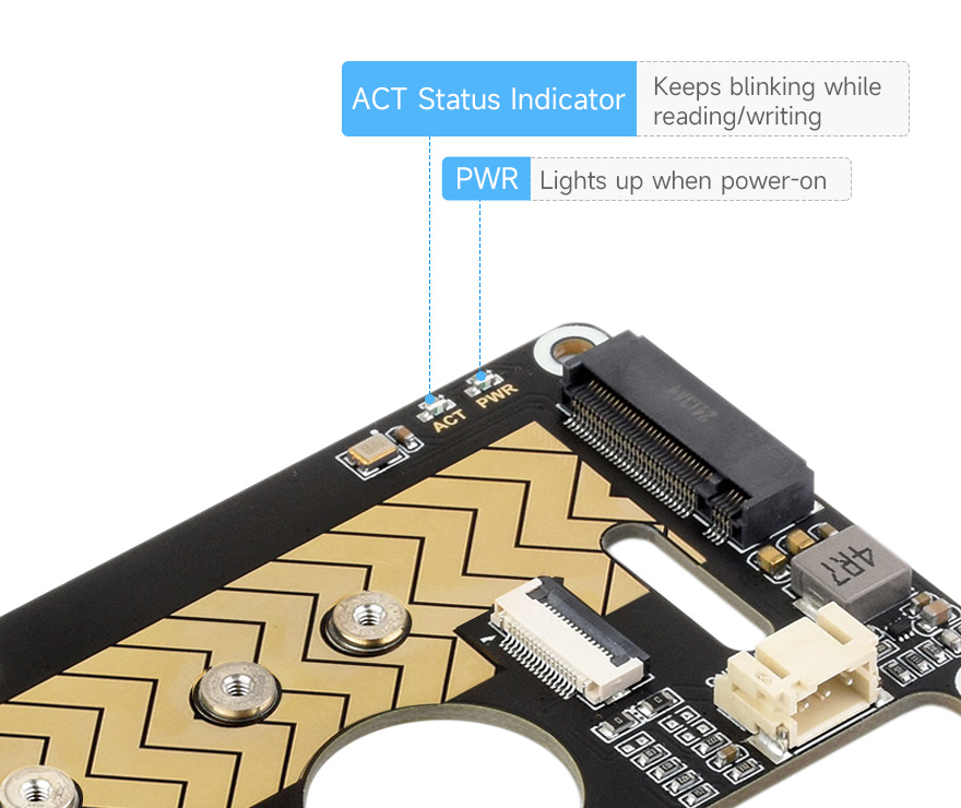 Tốc độ đọc/ghi nhanh hơn so với khe cắm thẻ TF của Raspberry Pi, cải thiện đáng kể hiệu quả đọc/ghi của hệ thống hoặc tệp, Hỗ trợ khởi động Pi5 từ NVME Solid State Drive.