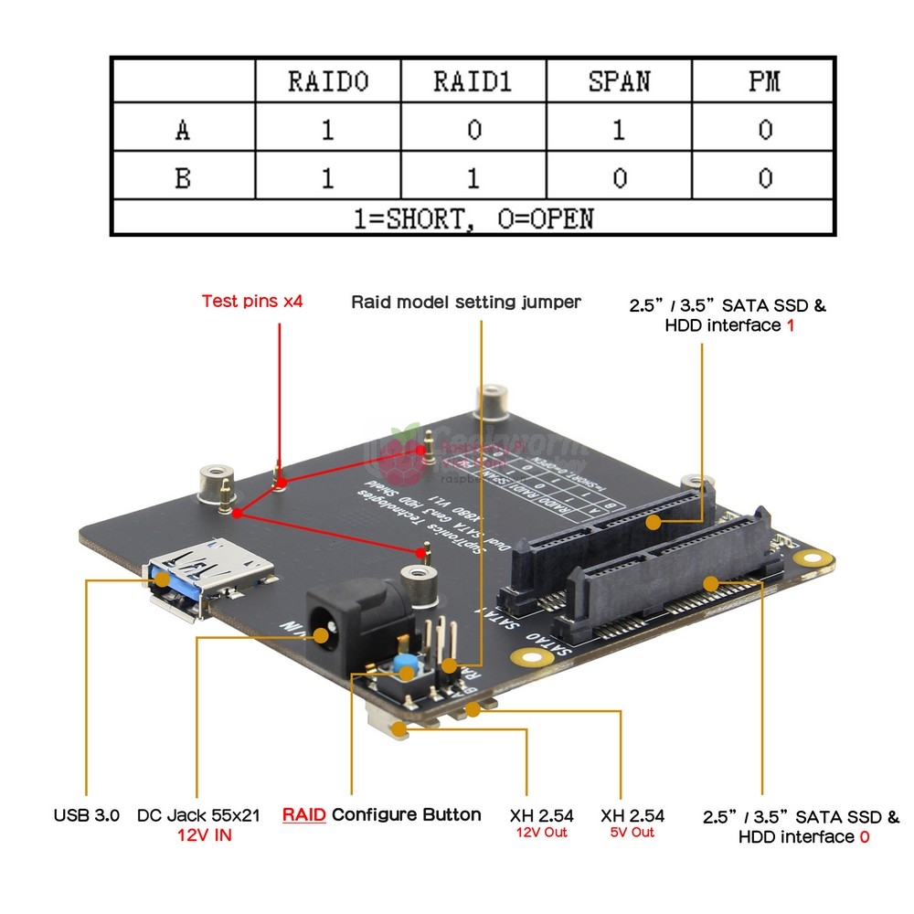 Giải pháp lưu trữ lý tưởng cho Raspberry Pi 4 với 2 cổng SATA Gen3 tốc độ cao.