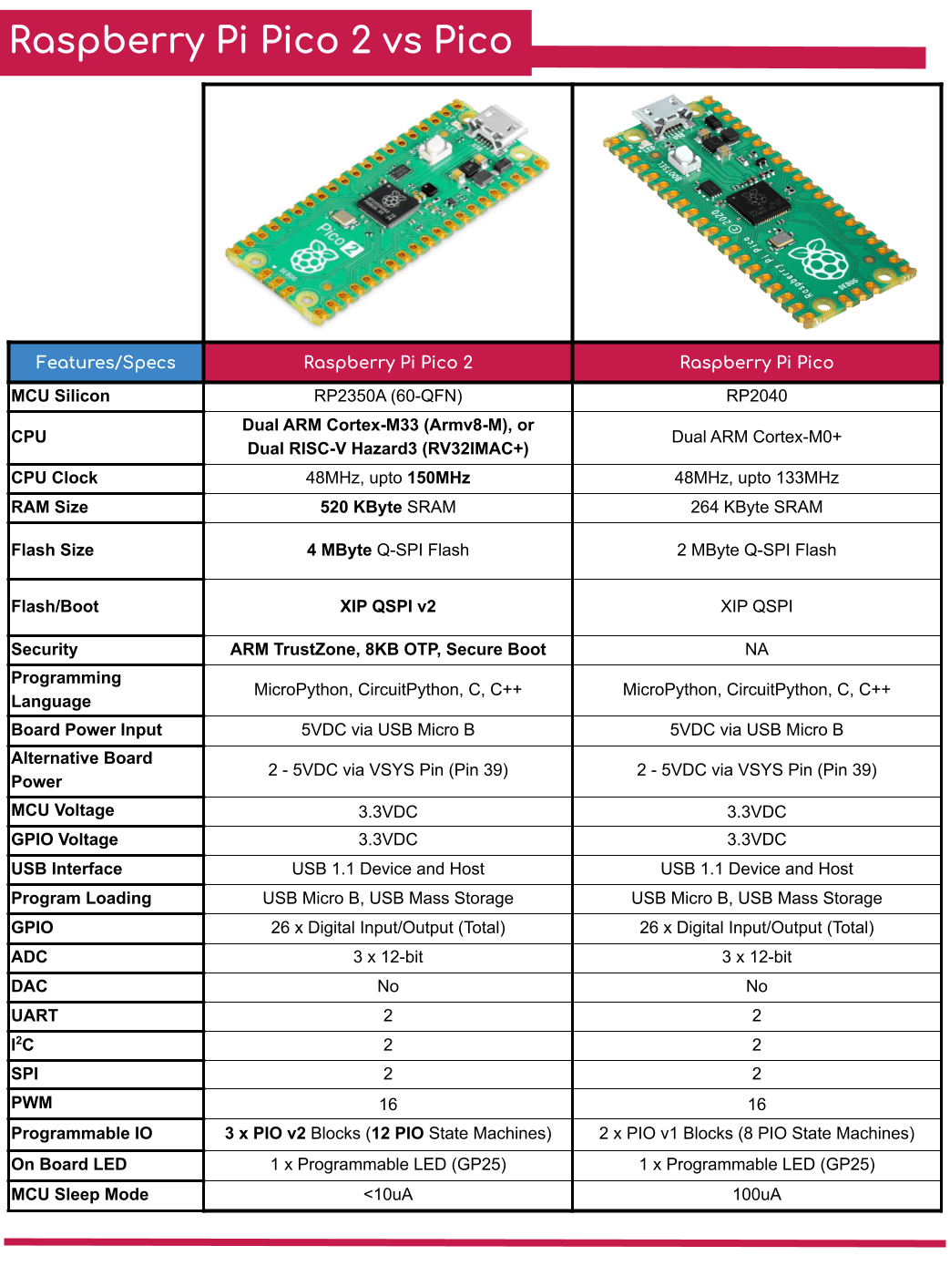 So sánh Raspberry Pi Pico và Raspberry Pi Pico 2