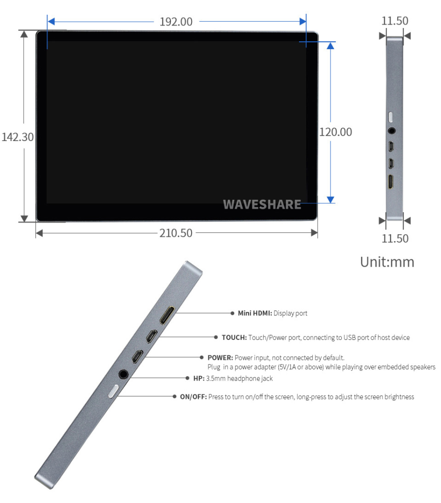 Kích thước màn hình 9″ 2K IPS Waveshare