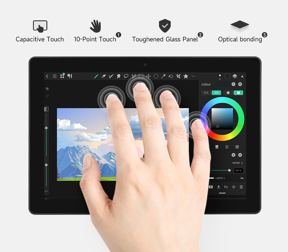 Màn hình cảm ứng điện dung All-in-one HMI RPI-HMI-080D, độ phân giải 1280×800 pixel, Bảng điều khiển IPS, kính cường lực liên kết quang học, cảm ứng 10 điểm, Camera 5MP, HDMI chuẩn 4K, vỏ hợp kim nhôm mang hiệu quả tản nhiệt cao.
