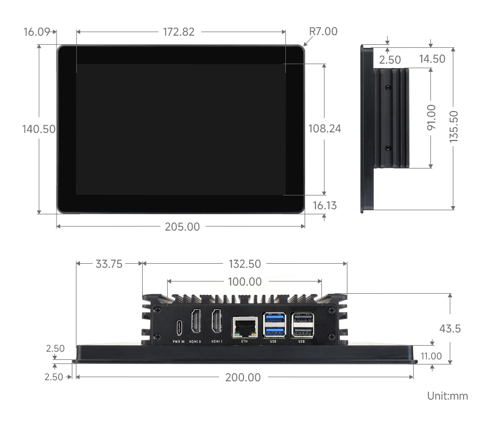 Màn hình tất cả trong một Pi5: CPU lõi tứ Arm Cortex-A76 64-bit 2,4 GHz