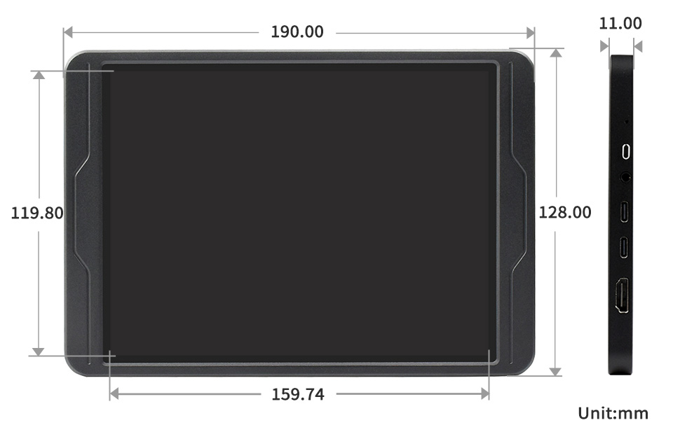 Màn hình cảm ứng điện dung 8 inch, Cổng HDMI, Độ phân giải 2K 1536X2048 pixel, tấm nền IPS, sử dụng kính cường lực liên kết quang học. Màn hình có độ phân giải cao, cảm ứng đa điểm và cho bạn hiển thị sắc màu đầy đủ.