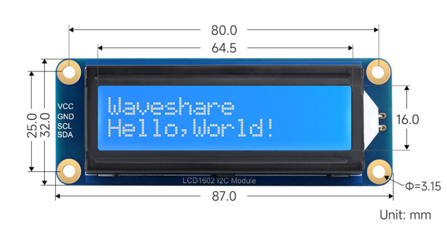 Màu trắng với nền xanh lam, giao tiếp I2C, tương thích 3.3V/5V