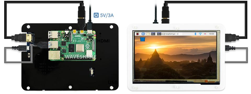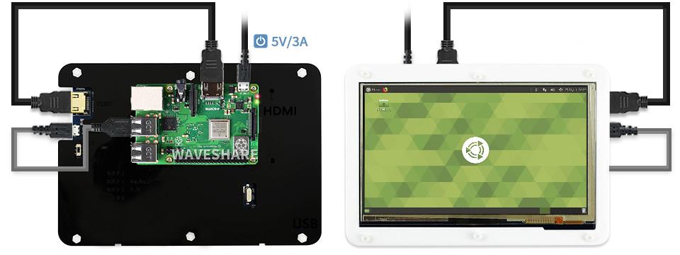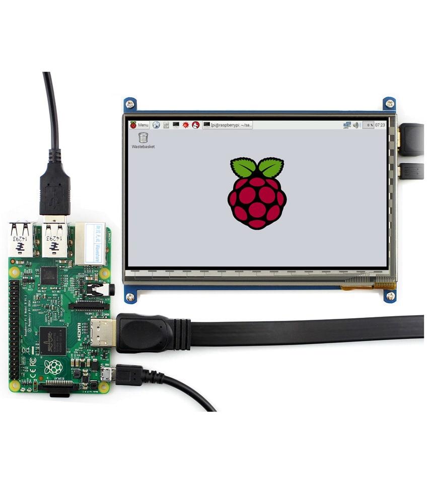 Màn hình cảm ứng 7″ (C) của WaveShare với bộ vỏ mica,, độ phân giải 1024 × 600, kết nối HDMI, tấm nền IPS siêu sáng, tiêu thụ điện năng thấp.