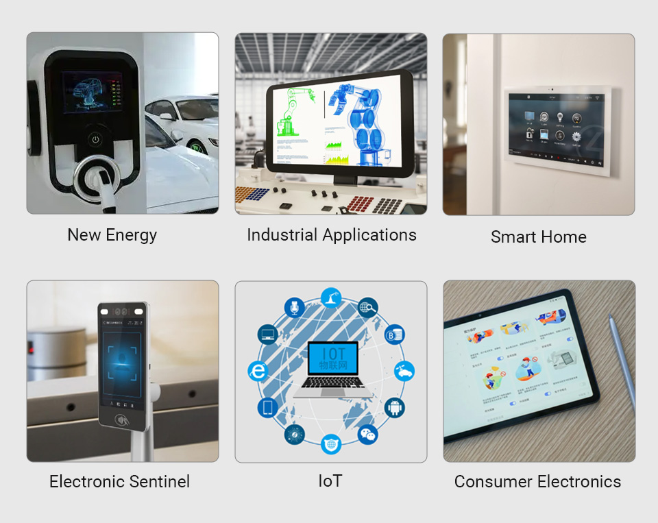 Năng lượng mới, Hệ Tthống giám sát điện tử, Màn hình giao tiếp với máy, IoT nhà thông minh, Ứng dụng công nghiệp, Điện tử tiêu dùng