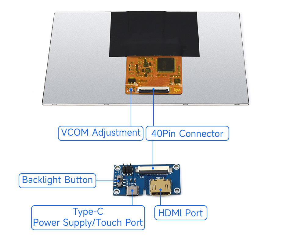 Chạm nhẹ và tận hưởng tương tác với màn hình qua cảm ứng điện dung 5 điểm, điều khiển thông qua cổng USB trên máy tính hoặc Raspberry Pi (chỉ có trên phiên bản màn cảm ứng)