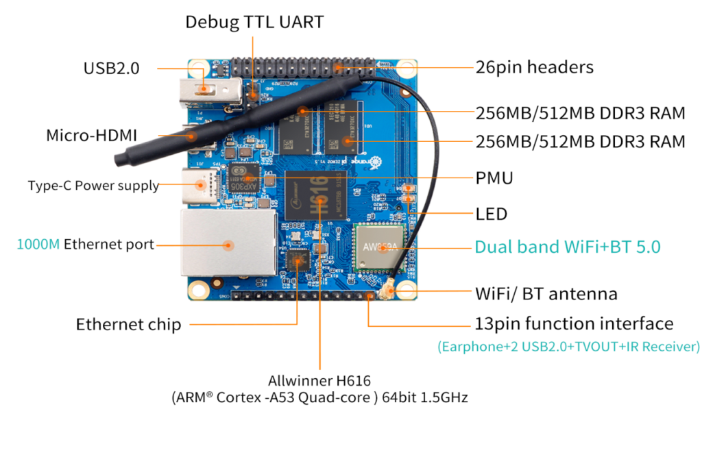 | CPU | Allwinner H616 64-bit high-performance Quad-core Cortex-A53 processor |