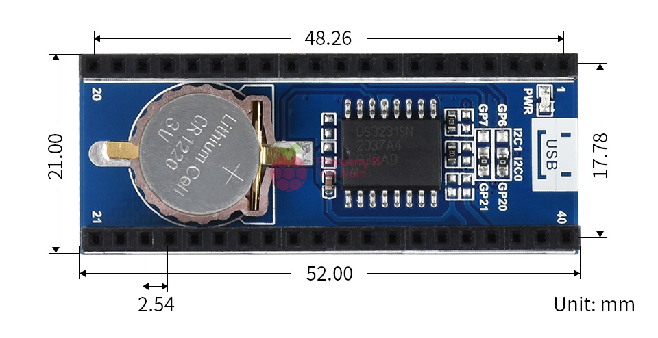 Module RTC chính xác cho Pico, tích hợp chip RTC độ chính xác cao DS3231