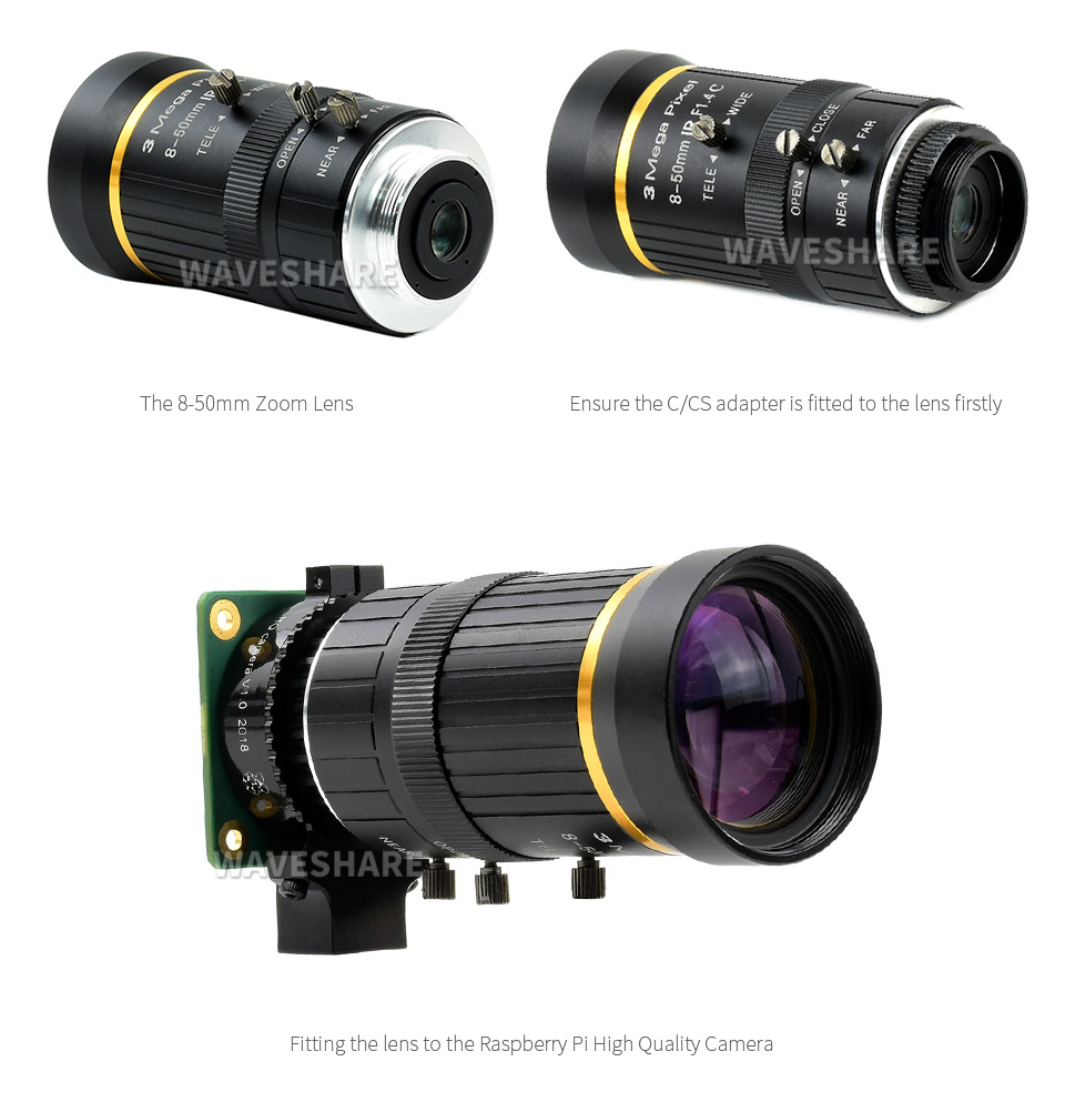 Ống kính zoom 8-50mm chất lượng tiêu chuẩn công nghiệp có thể thay đổi tiêu cự, có thể thay đổi góc trông, tương thích và là một phụ kiện không thể thiếu dành cho Raspberry Pi High Quality Camera.