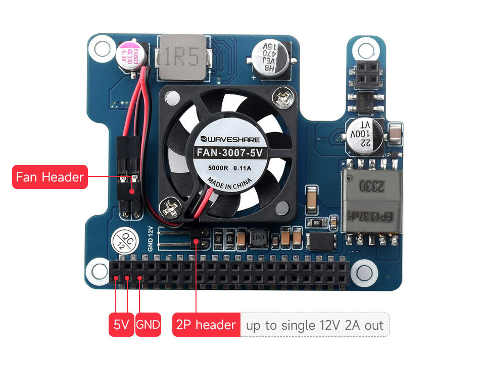 | SẢN LƯỢNG ĐIỆN | Tiêu đề GPIO: 5V 4.5A (TỐI ĐA) Tiêu đề 2P: 12V 2A (TỐI ĐA) |