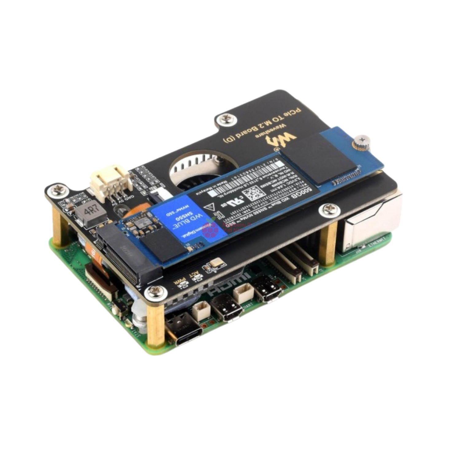 - Adapter PCIe sang M.2 NVMe (D) Raspberry Pi 5