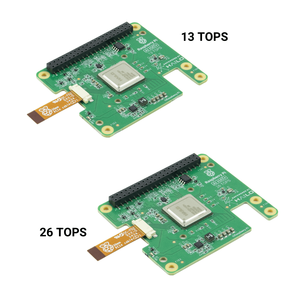 AI HAT+ có sẵn ở các biến thể 13 và 26 tera hoạt động mỗi giây (TOPS), được xây dựng dựa trên bộ tăng tốc Hailo-8L và Hailo-8. Biến thể 13 TOPS có khả năng chạy các mạng thần kinh cho các ứng dụng bao gồm phát hiện đối tượng, phân đoạn ngữ nghĩa và phiên bản, ước tính tư thế, v.v. Biến thể 26 TOPS có thể xử lý các mạng lớn hơn, có thể chạy chúng nhanh hơn và có thể chạy nhiều mạng cùng lúc hiệu quả hơn.