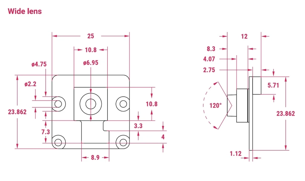 - Camera Module V3, visible light, 120º viewing angle lens