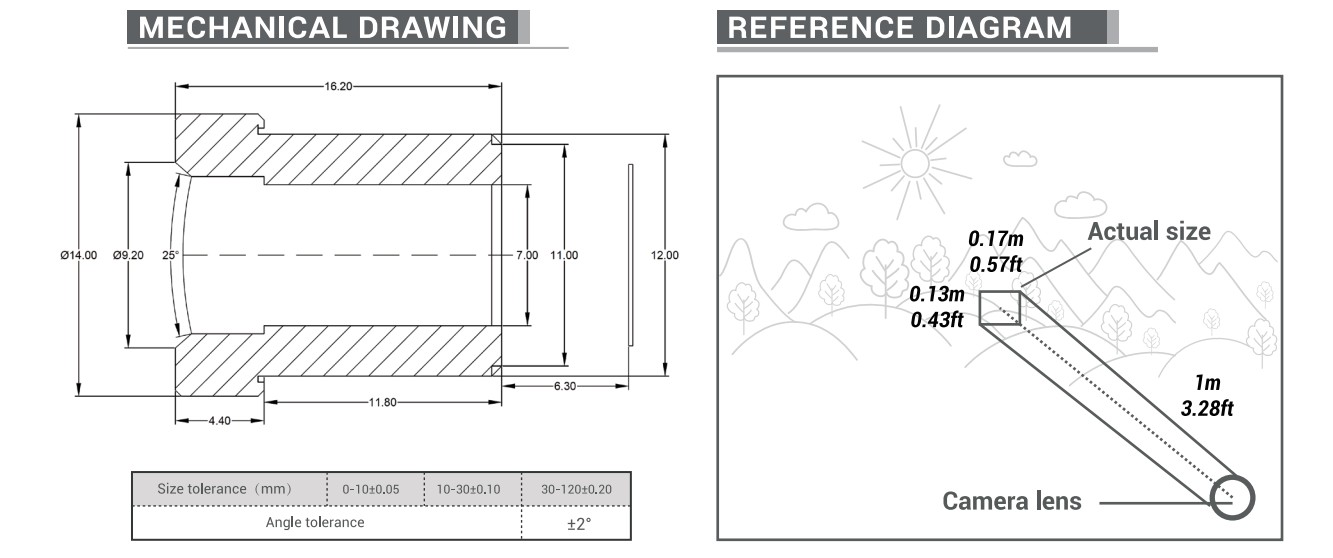 Thông số kỹ thuật Ống kính Telephoto 16mm góc nhìn 10º ngàm M12