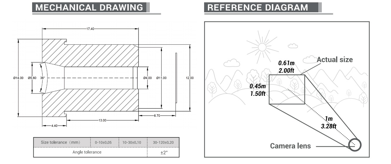 - FOV on 1/2.8” sensor(D/H/V): 23°/20°/11°