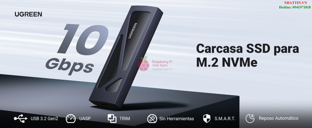 SSD Box M.2 NVMe USB-C 3.2 Gen 2 Ugreen 15512 – Tốc độ 10Gbps, hỗ trợ tối đa 8TB