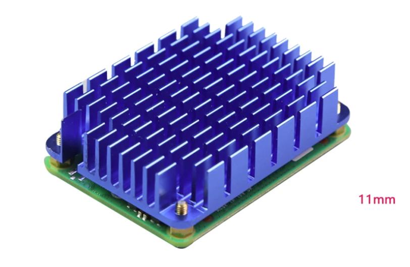 Tản nhiệt có kích thước tương tự như mạch CM4 với các lỗ bắt ốc cố định, giúp CPU hoạt động với hiệu suất cao và bền bỉ nhất. Hiệu quả đo thực tế cho thấy, tản nhiệt này (loại 11mm) có khả năng làm giảm tới 18 độ so với loại tản nhiệt nhỏ 14x14mm gắn trên CPU
