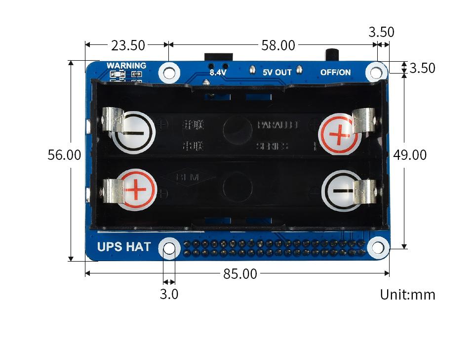 Kích thước UPS HAT WaveShare