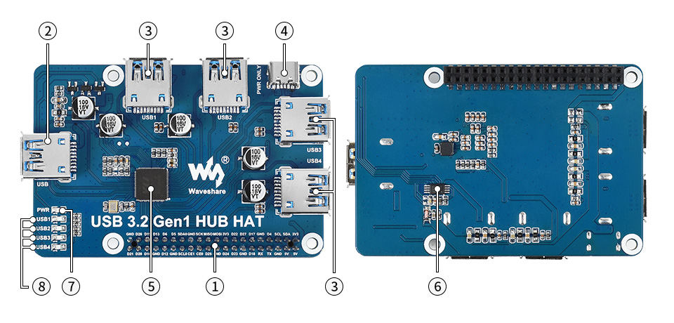 Sơ đồ thiết bị USB 3.2 Gen1 HUB HAT