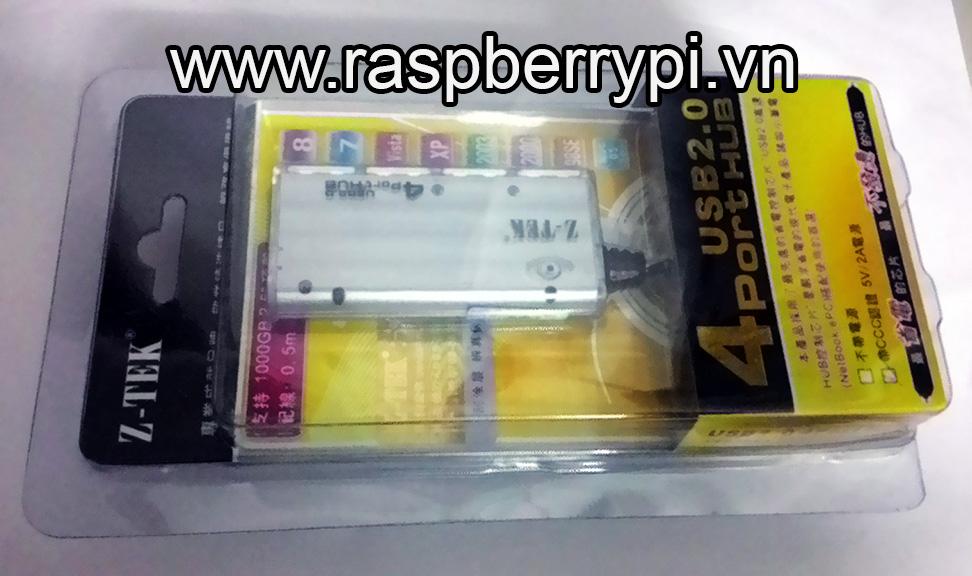 USB HUB với 4 port, sử dụng nguồn ngoài 220V cung cấp đầu ra 5V – 2A, đặc biệt không cấp nguồn ngược trở lại cho Raspberry Pi đảm bảo an toàn không gây hư hỏng thiết bị.