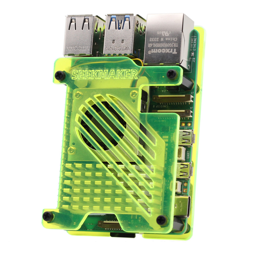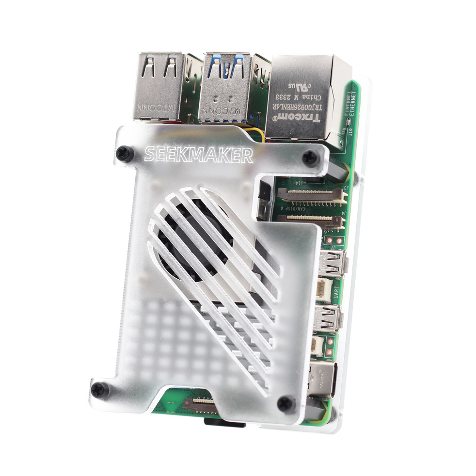 Sản phẩm vỏ Acrylic mờ nhiều màu từ thương hiệu Seekmaker dành cho Raspberry Pi 5, hỗ trợ lắp quạt và tản nhiệt thụ động Active Cooler.
