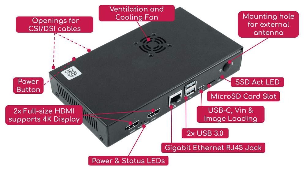 - Convenient Power Control: Opening for easy access to the power button on the CM5 IO board. The button acts like the power button on Raspberry Pi 5