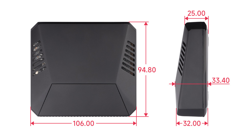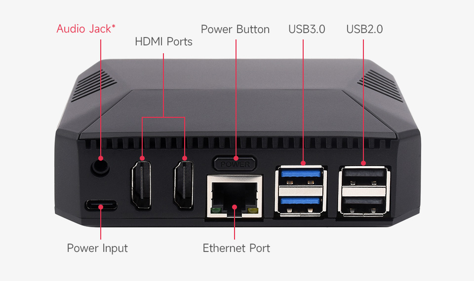 Toàn bộ mặt trên hoạt động như một bộ làm mát thụ động cho Raspberry Pi, kết hợp với quạt làm mát đi kèm và nhiều lỗ thông hơi, mang lại hiệu quả làm mát tuyệt vời