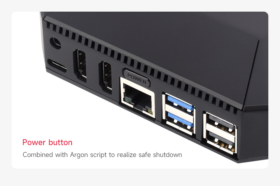 - Nút nguồn tiện lợi: Nút nguồn dễ sử dụng ở phía sau có thể tắt, khởi động lại an toàn và có thể tùy chỉnh bằng tập lệnh nguồn mở.